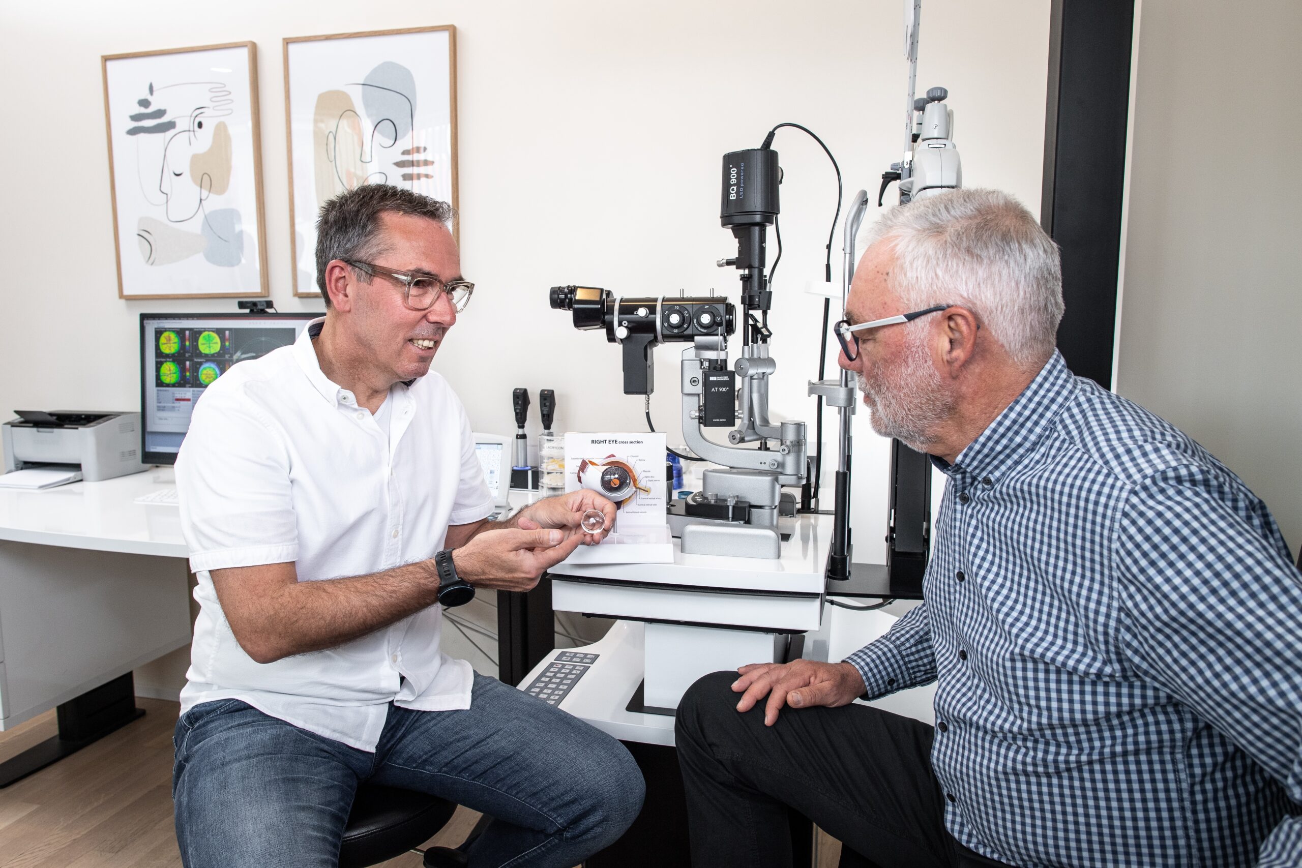 Mit einer speziellen Mikroskoplampe wird die Struktur der Augenlinse untersucht, um Trübungen zu erkennen.
